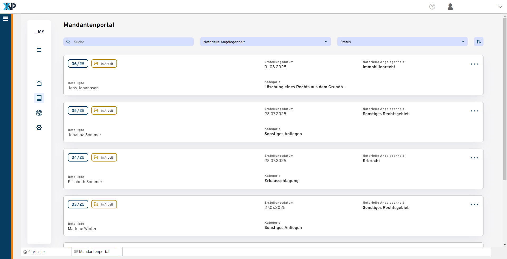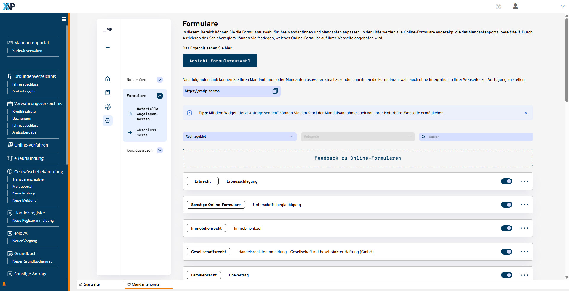 Die eingegebenen Daten werden digital an das Notarbüro übermittelt und als neuer Vorgang im Mandantenportal angelegt, welches sich bequem in der gewohnten XNP-Oberfläche ansteuern lässt.