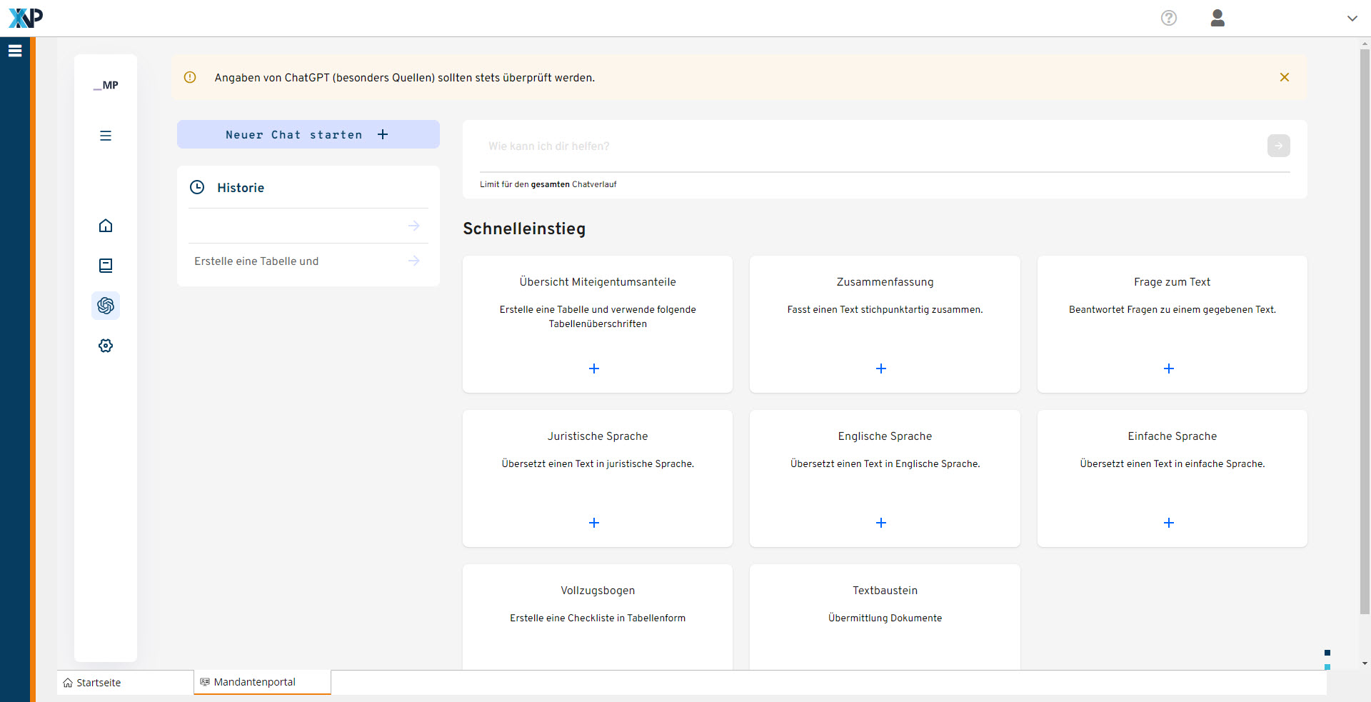 Zentrale Funktionen des Mandantenportals